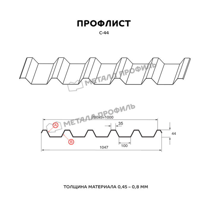 Профлист Металл Профиль С-44 0,8 Цинк Бесцветный