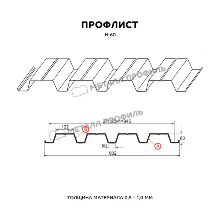 Профлист Металл Профиль Н-60 1 Цинк Бесцветный